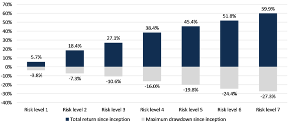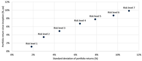 We are pleased with the way that the different risk level portfolios have performed in relation to each other. Over time, there has been a clear incremental improvement in returns generated for each additional increase in portfolio risk.