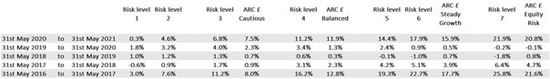 The latest year has seen strong performance from equity markets, thanks to the support of central banks, governments and vaccine rollouts in restoring confidence after the violent falls and sharp rebounds of the first quarter of last year. This led to leading returns from our most ambitious risk level portfolios, while the more cautious and balanced risk levels saw more muted performance due to the dampening impact of their fixed income exposure.