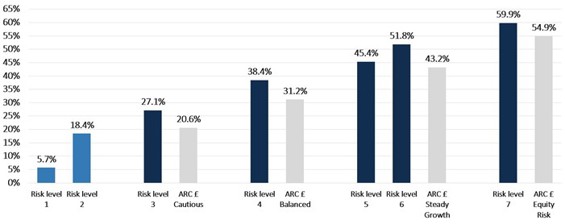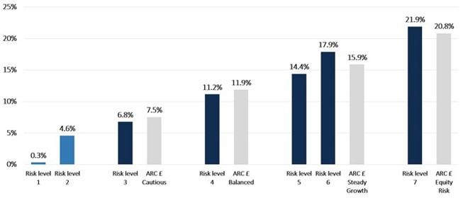 This is a very different picture to our experience of the previous year, when those same Risk Levels 3 and 4 delivered the best returns. This is true for the absolute numbers and relative to their appropriate peer groups of other UK wealth managers, as represented by the Asset Risk Consultants Private Client Indices.